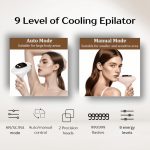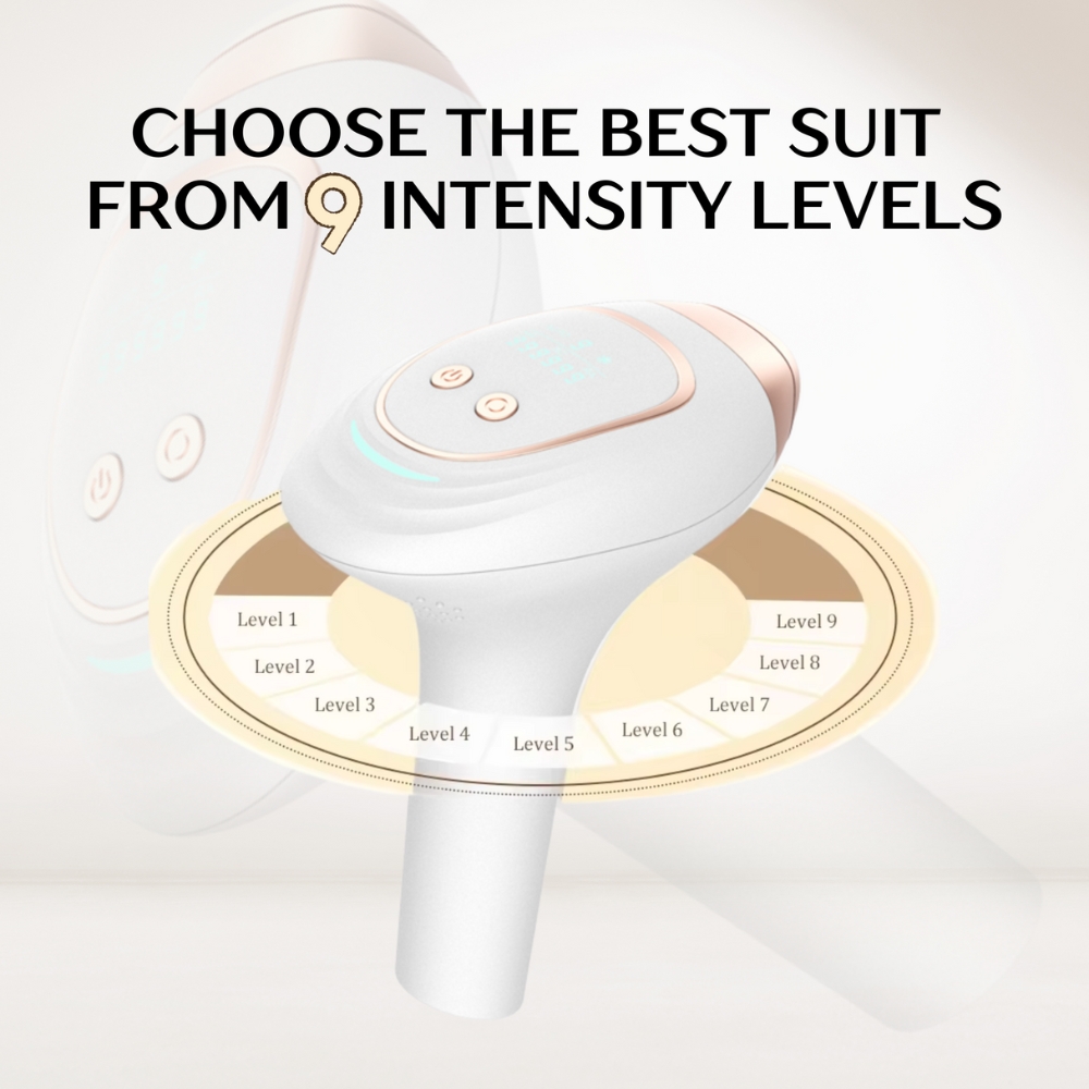 - ADJUSTABLE SETTINGS: 9 intensity levels allow customization for different skin tones and hair types, ensuring safe and effective treatment. Experience virtually painless hair removal. Thanks to the built-in 9-level cooling technology. The device keeps the skin cool and comfortable during each flash, reducing irritation and making it gentle enough for sensitive areas like legs, arms, underarms, and bikini lines